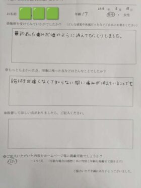 感想に 『痛みが嘘のように消えて』 『知らない間に痛みが消えて』