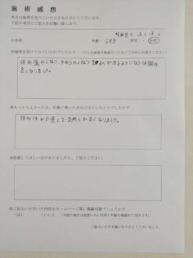 施術にお越し頂き今年で4年になる方から