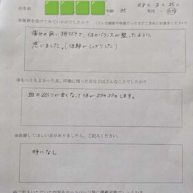 週1回の施術で3回目の施術を終えられた方の感想を頂きました