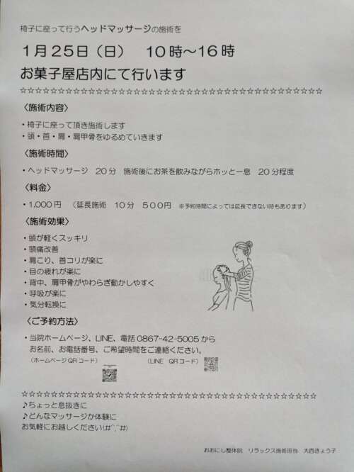 - 【1月25日(日)お気軽ヘッドマッサージ開催ご案内】 - 2026年1月17日