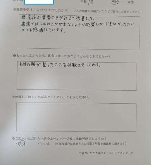 病院ではこれ以上ゆがまないような処置しかできなかったので とても感動しています。